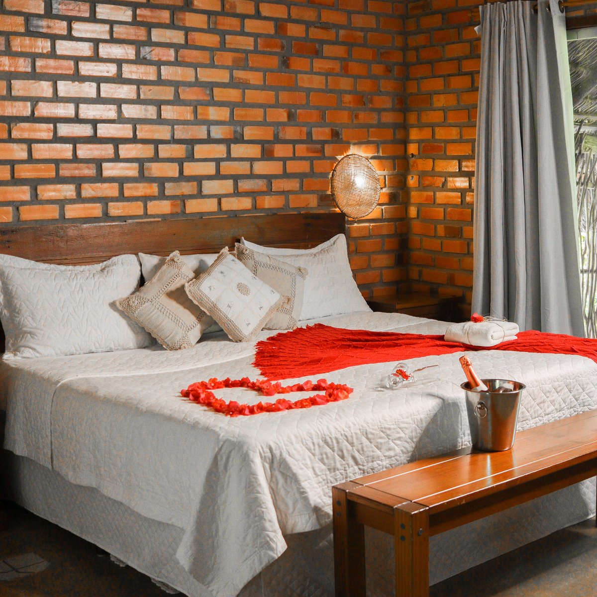 São quartos localizados na área central da pousada, próximos às zonas sociais e ao espaço do café da manhã, oferecendo praticidade e fácil acesso a toda a experiência da hospedagem. Possuem varanda com vista para o jardim e redes para descanso, cama box, ar condicionado, chuveiro elétrico e Smart TV