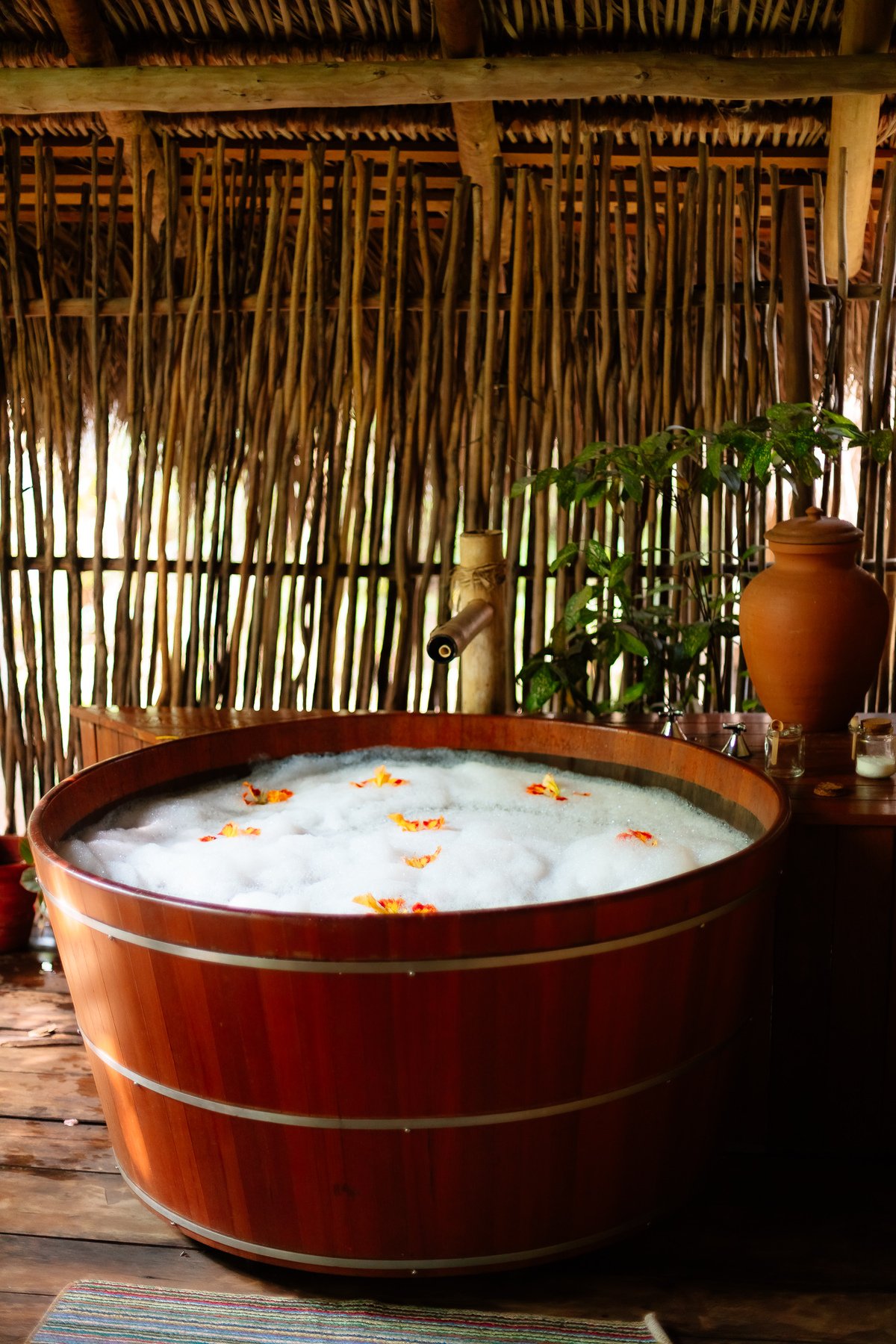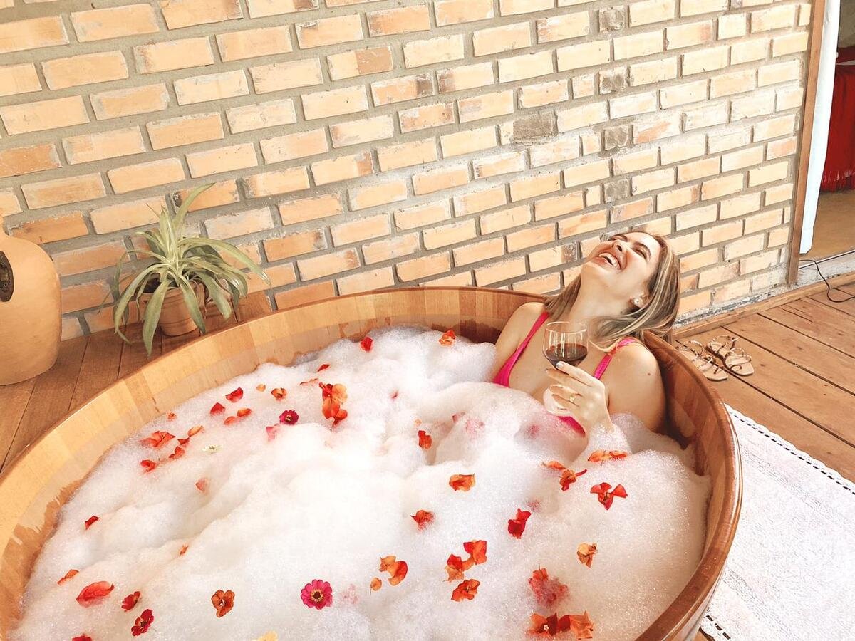 Ideal para famílias maiores ou casais em lua de mel que desejam viver dias de tranquilidade em meio à natureza. O bangalô conta com uma varanda frontal com redes e mesa de jantar, perfeita para momentos em família ou a dois. Ao fundo, uma varanda privativa com ofurô aquecido e hidromassagem oferece uma experiência exclusiva, com vista direta para o bosque. A suíte dispõe de cama box king size e Smart TV de 40”, garantindo conforto e comodidade durante toda a estadia.